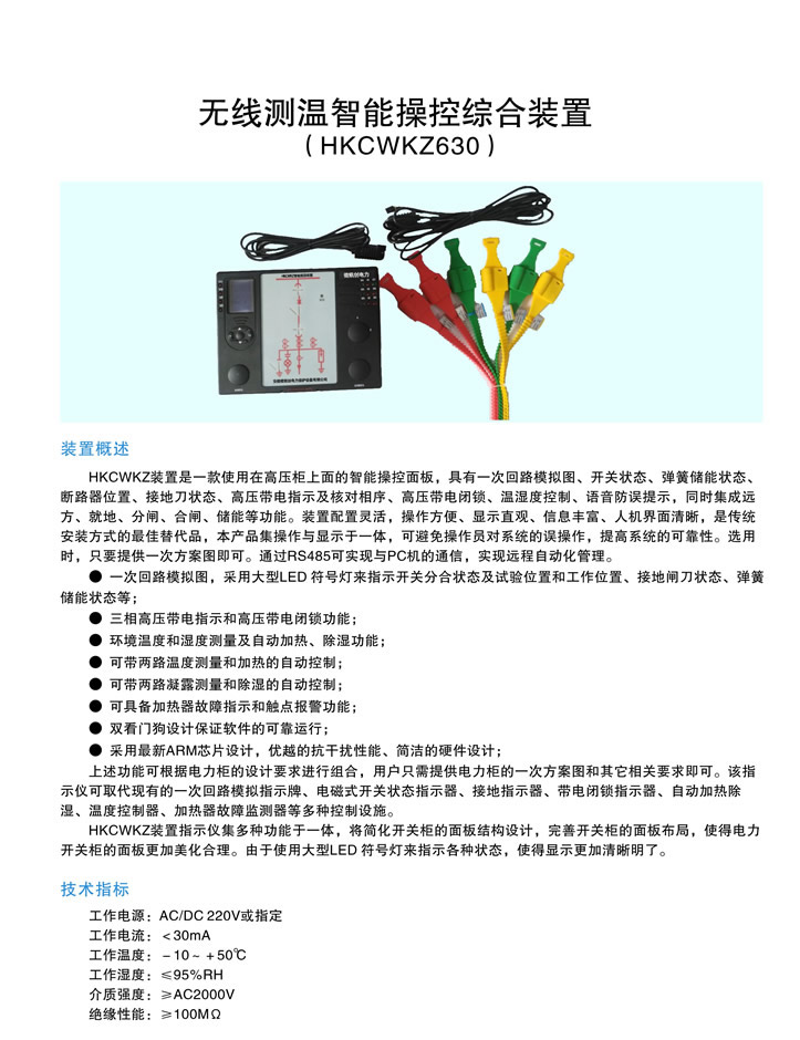 - 產品簡介:???HKCWKZ630無線測溫智能操控綜合裝置